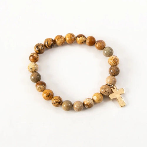 STACI BEADED CROSS CHARM BRACELET -BROWN