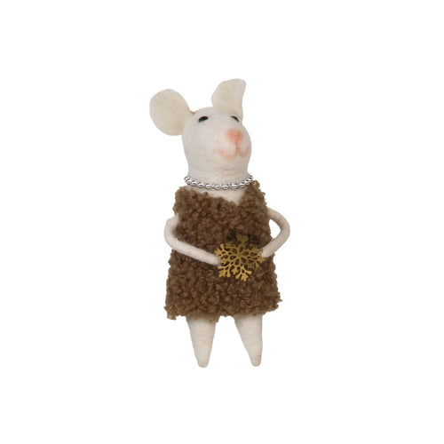Ornament Felt Mrs Mouse w/Pearl Necklace