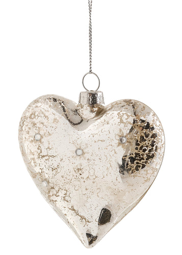 Ornament Heart With Gems In Mercury Glass